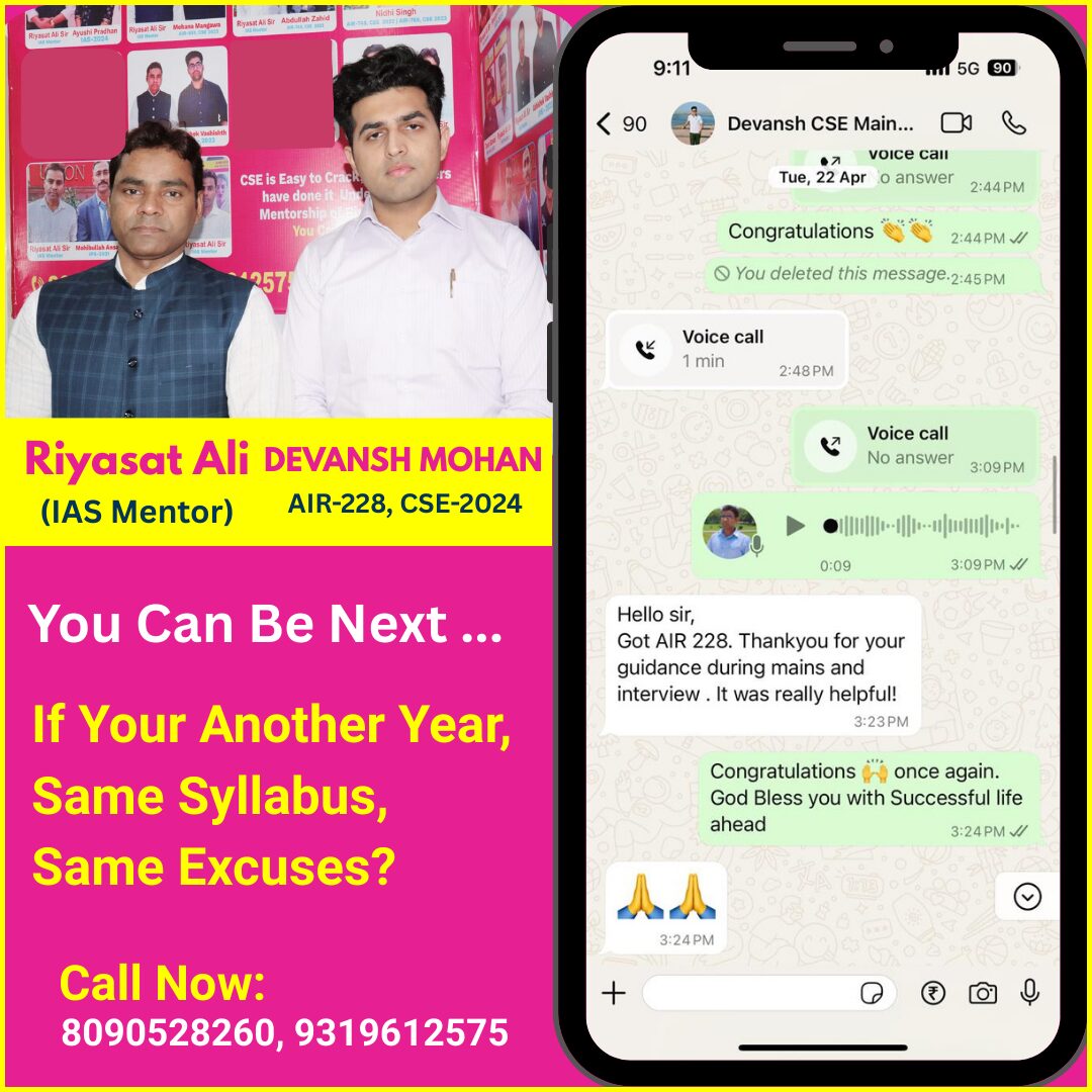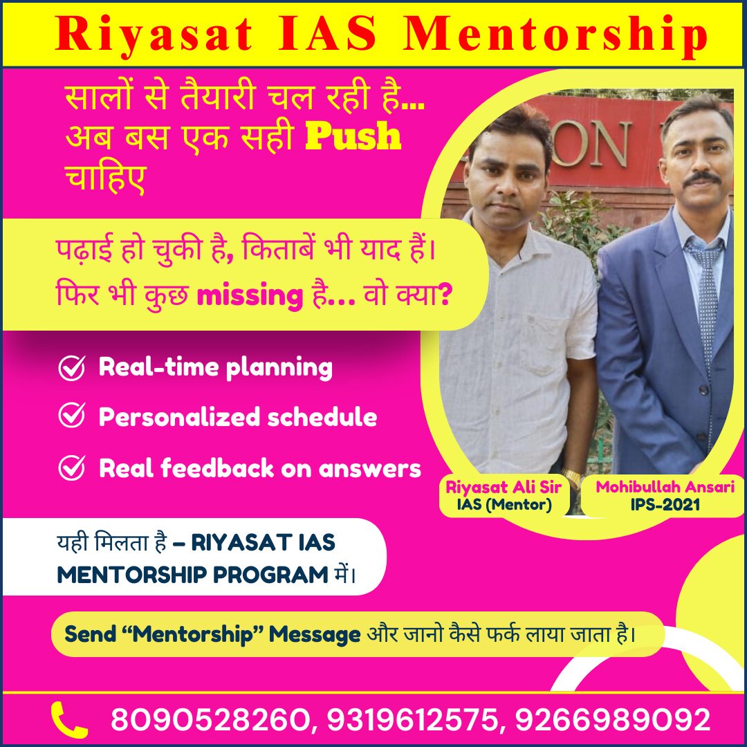 Riyasat Ali Mentorship Program offers structured guidance for serious UPSC aspirants. Designed by Riyasat Sir this program provides personalized strategies, answer-writing improvement, and conceptual clarity to help students achieve top results under expert mentorship.